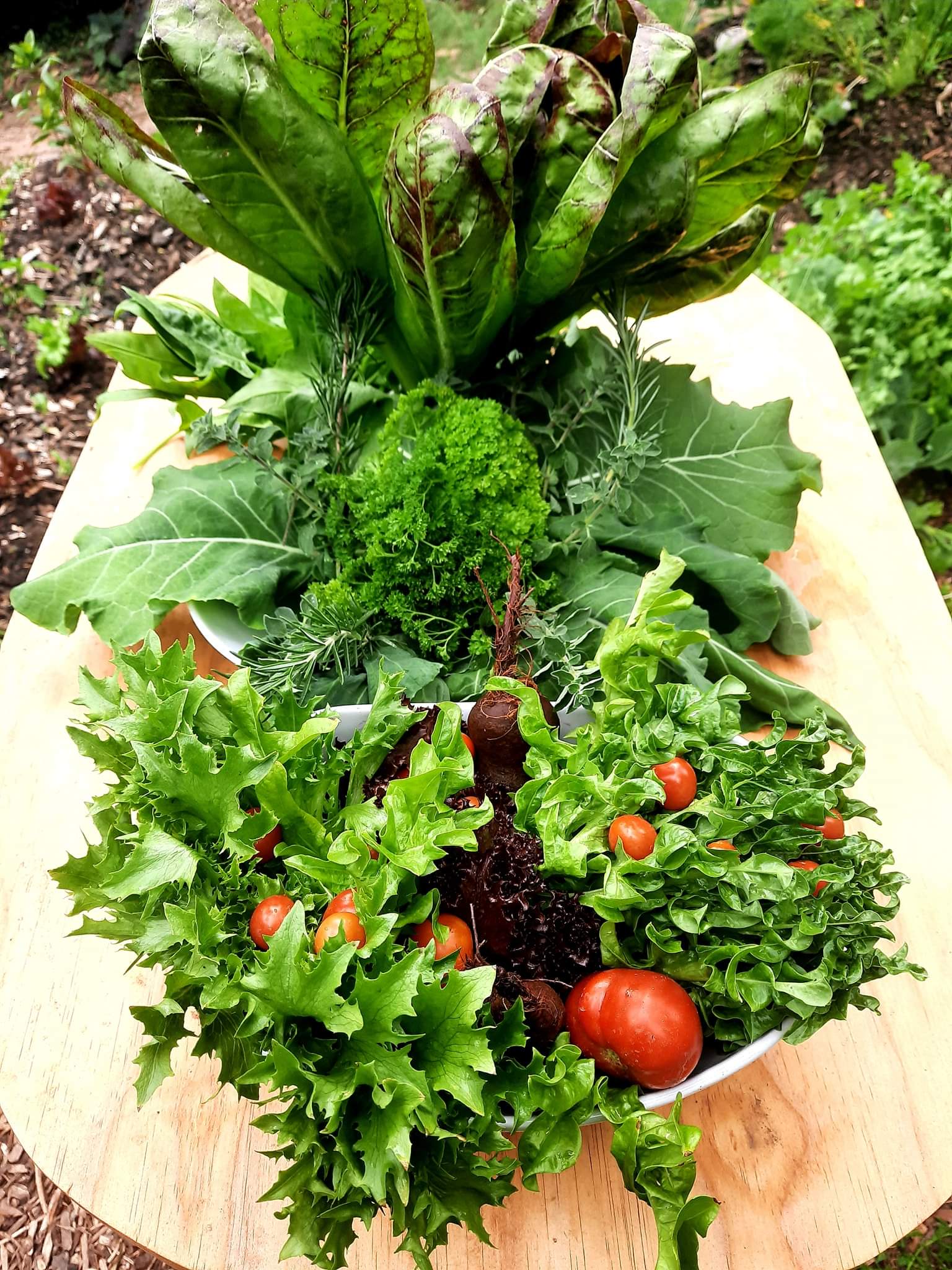 Axel WillFresh Herbs, Beets, Pepinos, Tomatoe, Physalis, Salad Mix,… Great Harvest in a Backyard Food Forest in South Africa in Plettenberg Bay Permaculture Gardening Harvest